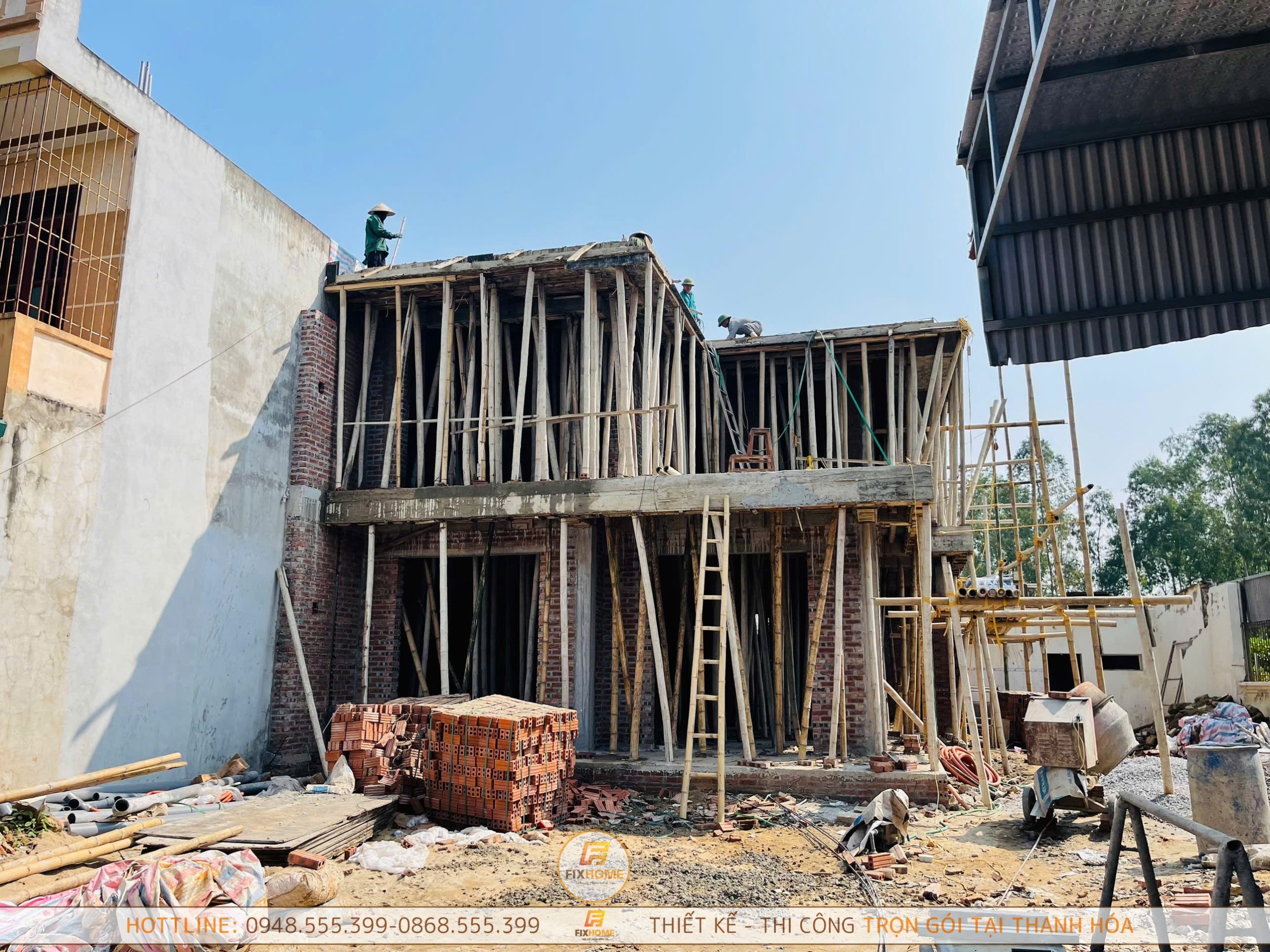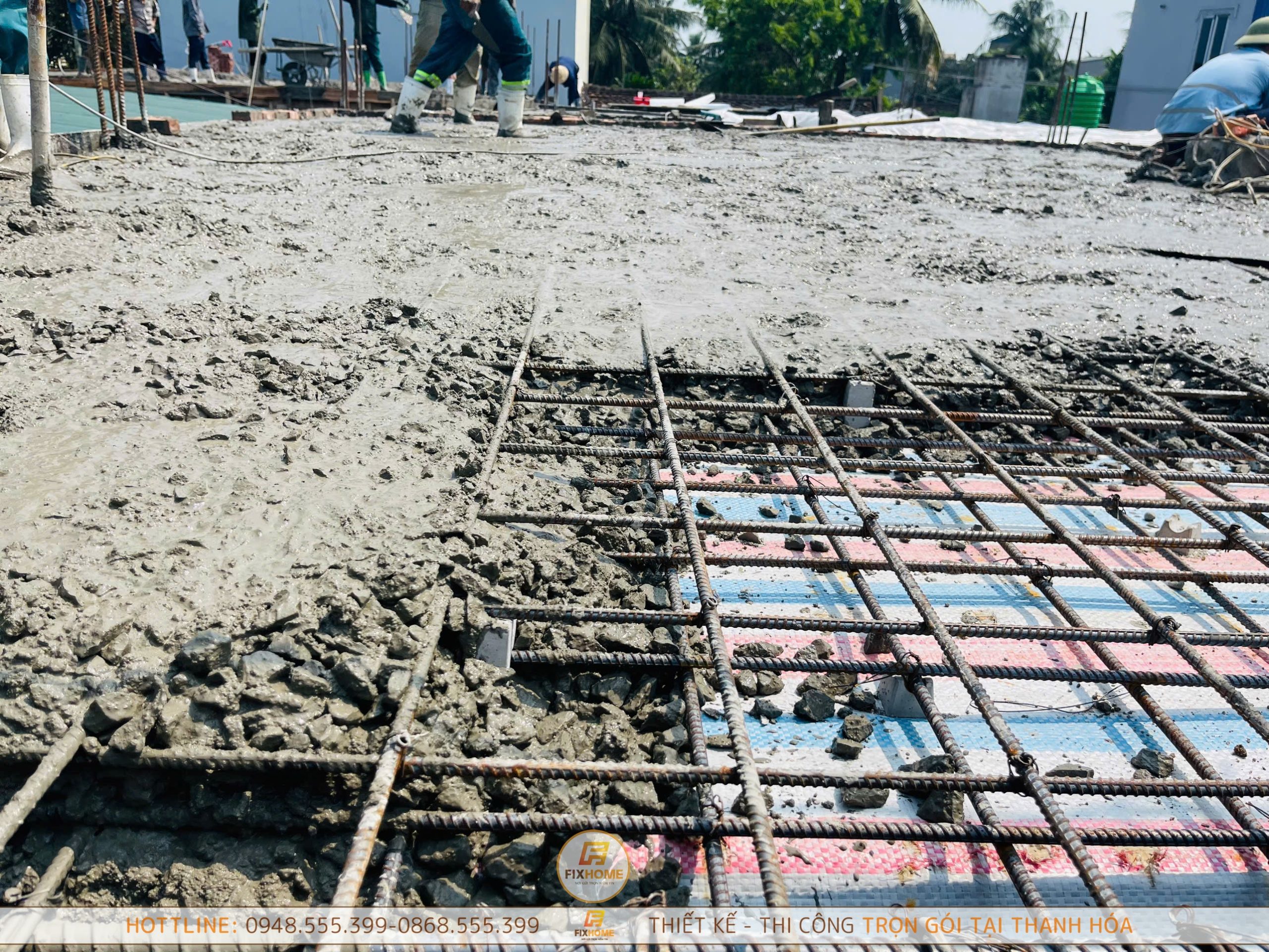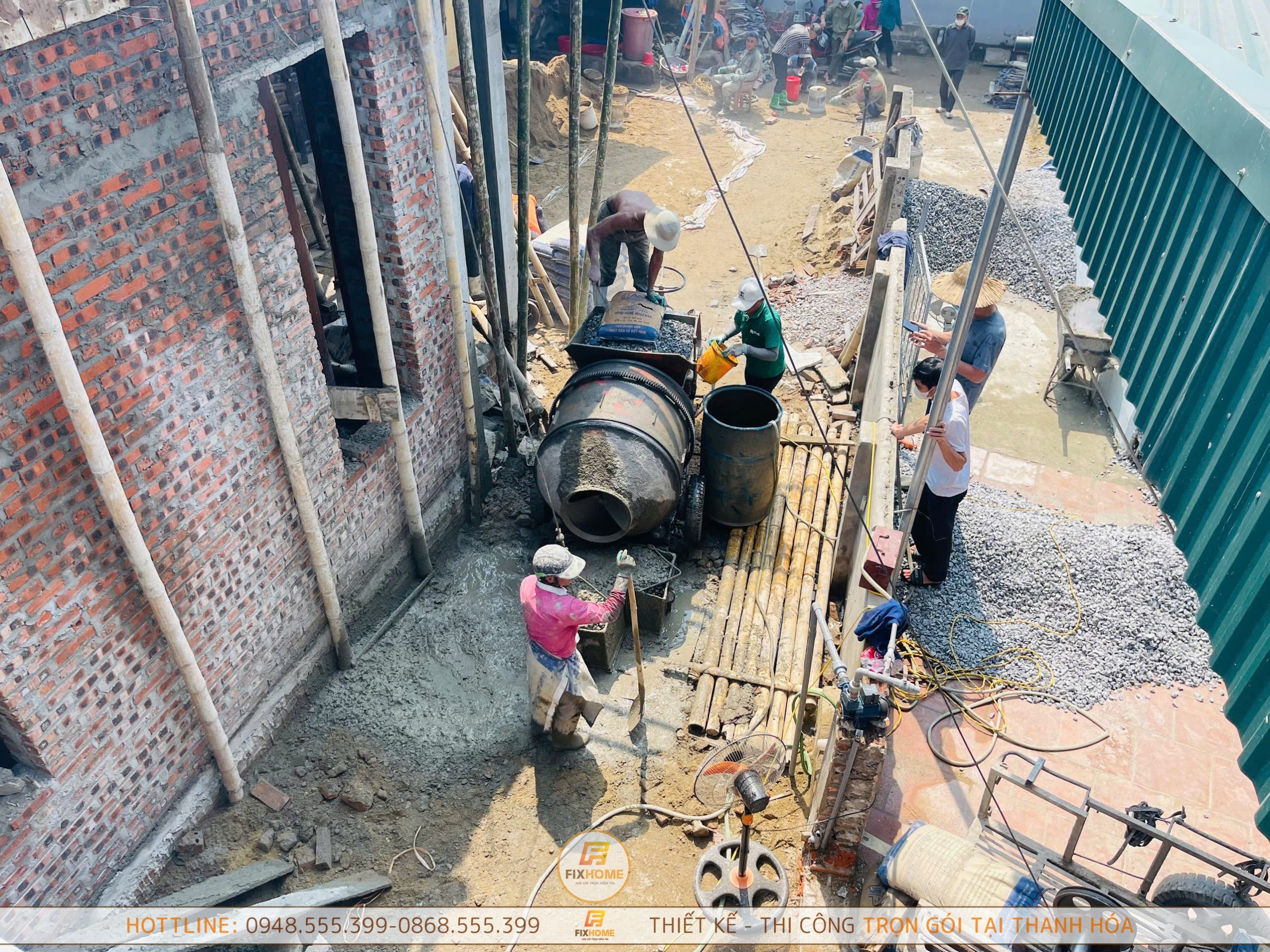 - Thi công móng, đà kiềng, cột, sàn, tường, dầm, cầu thang, mái