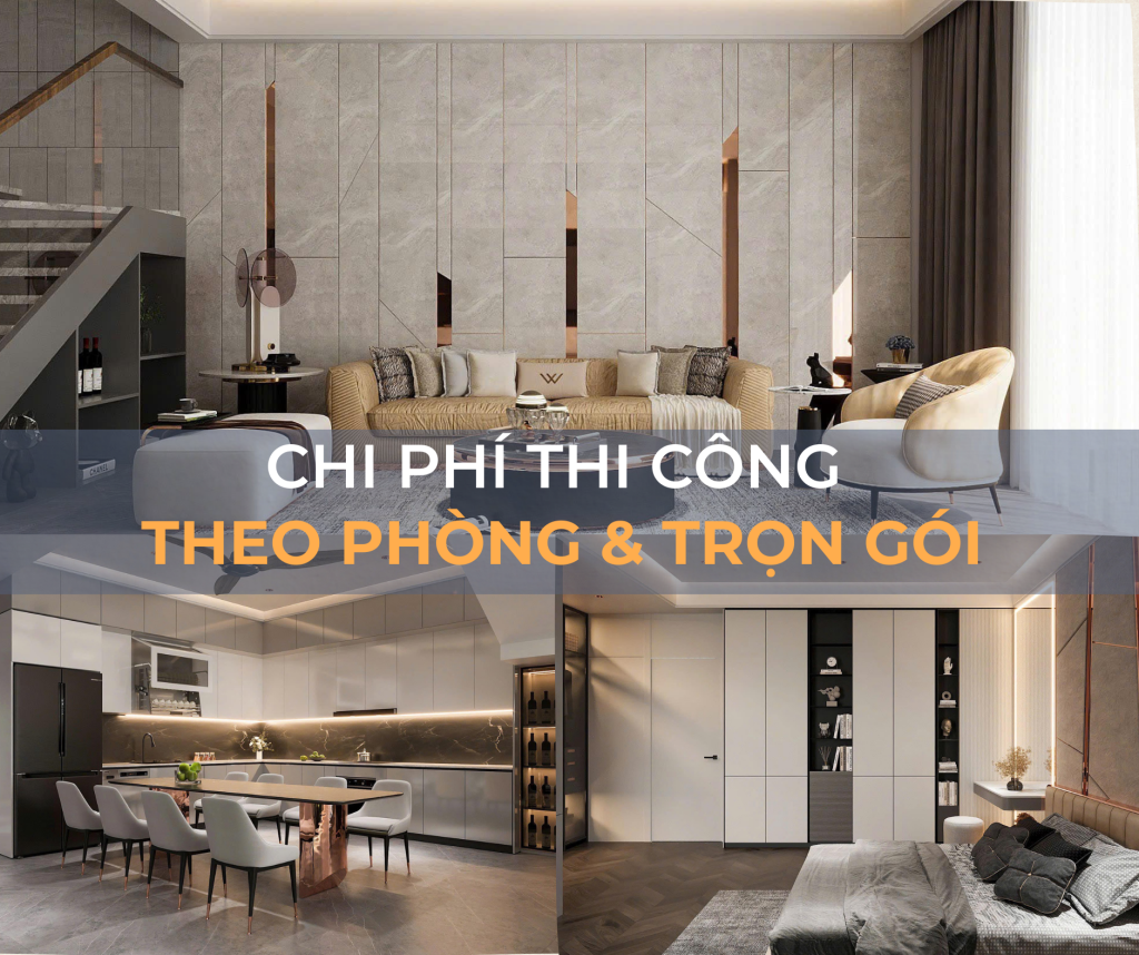 * Tổng thi công từng phòng lẻ có thể cao hơn từ 10–20% so với trọn gói, do phát sinh chi phí vận chuyển, lắp đặt, thiết kế lại hoặc mua vật tư nhỏ lẻ.